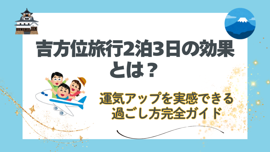 この記事では、2泊3日の吉方位旅行で得られる具体的な効果、いつから実感できるのか、効果を最大化する過ごし方まで徹底解説します。